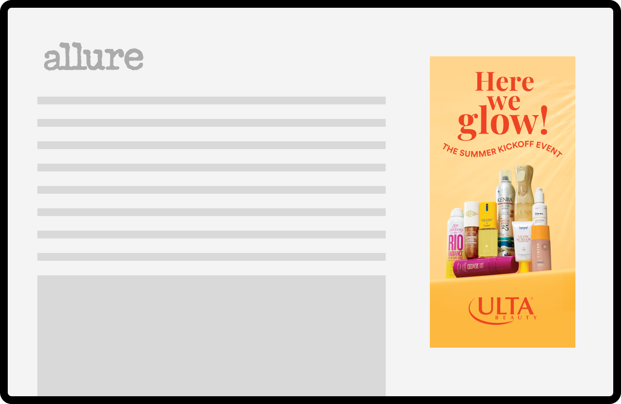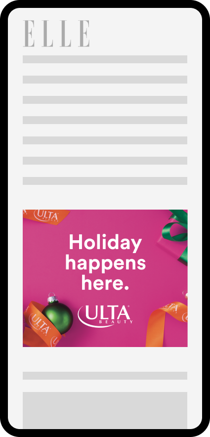 These performance creative assets are part of a long term partnership with Ulta Beauty to create a mix of performance-focused assets, from banner ads to shoppable and connected TV videos. Most of my work centered on campaign creative that balanced brand aesthetics with measurable results, giving me the chance to experiment with different formats and optimize for engagement.